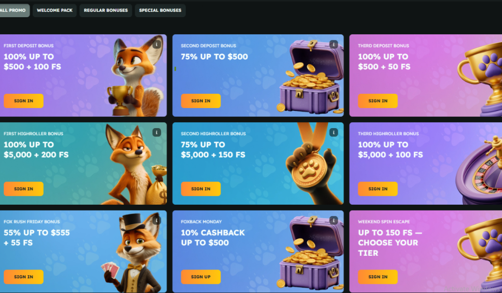 Regular promotions keep the excitement going: Monday cashback, Friday reload bonuses, and an 11-level VIP program that gives bigger cashback and personal managers as you climb. If you enjoy colorful slots with big win potential, Fox Slots belongs on every crypto casino list in 2026.