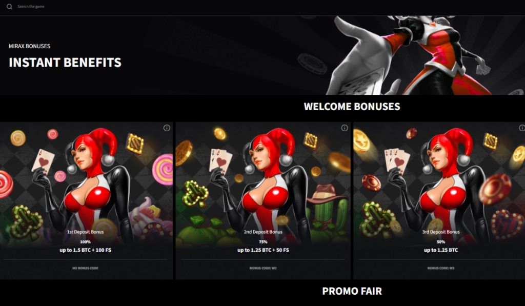 | MIRAX | 325% up to 5 BTC and 150 free spins | Huge game library with over 7000+ games |