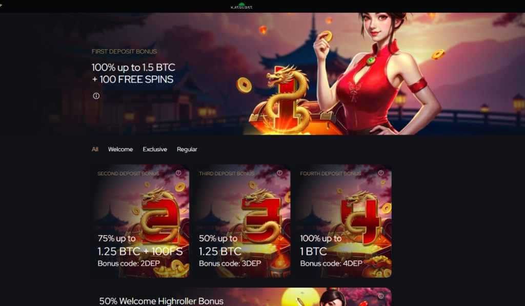 | KatsuBet | 325% up to 5 BTC and 200 free spins | Fast-paced tournaments |