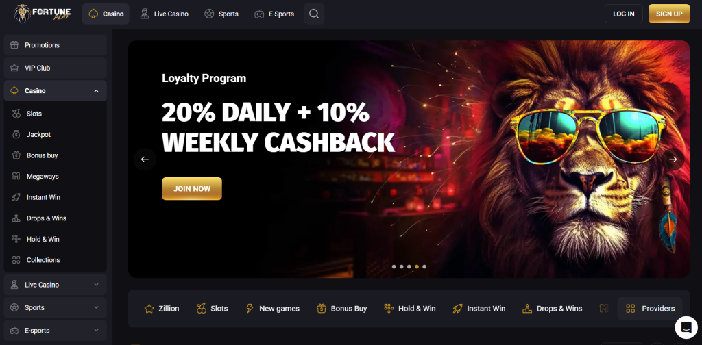 With FortunePlay, I mainly looked at how it rewards long-term, steady play. The welcome structure mirrors sister brands, but what grabbed me was the ten-tier program that pays daily, weekly, and monthly cashback once I build up comp points. Because every welcome bonus only lasts three days and carries 40× wagering on bonus and spins, I found it better to claim offers when I knew I would play actively, then rely on ongoing cashback to smooth out my results over time.