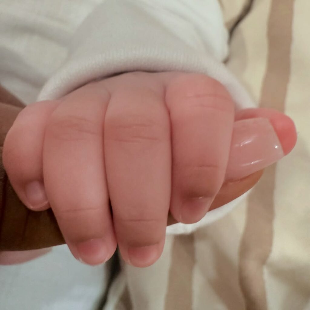 “Yakira Eliana, Olakitan, Iyanuoluwa, Ikeoluwa, Adunola. My purpose, my reason, my evidence. Thank you for choosing me, thank you for making me a Mother. My heart overflows with so much gratitude. God heard, God answered. Every single detail, down to your fingers and toes, oh He heard my prayers. Meet my miracle, Yakira Eliana – Precious, Beloved – of great worth, My God has answered.”