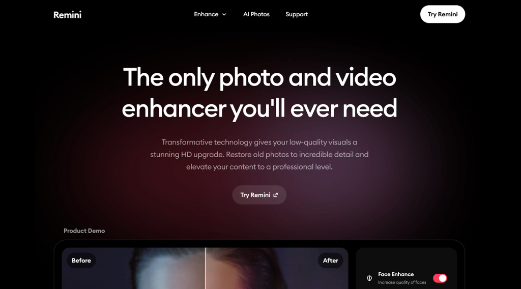 Remini is available on Android, iOS, and web browsers, meaning you could easily access it on any device. Remini even supports video enhancement, which is beneficial if you have shaky low low-quality videos to improve. A free version is provided with ads, but premium plans can eliminate ads and also unlock other tools. For anyone looking to restore old memories, Remini is an excellent choice.