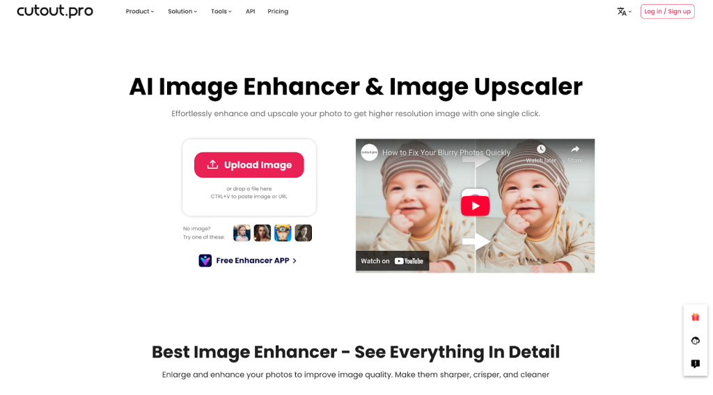 Cutout.Pro is a reliable online tool that makes photo enhancement effortless. Its photo enhancer platform combines multiple tools, such as cropping, background removal, passport photo creation, virtual outfit changes, and even turning images into videos.