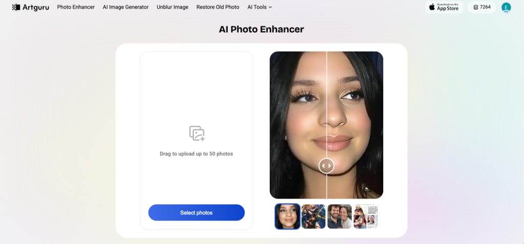This is an incredibly powerful AI photo enhancer that can easily take fuzzy, low-quality photos and convert them to clear, high-quality images. Artguru can upscale your photos to HD and 4K quality while adding natural details so that the photos you take pop with natural clarity and sharpness. For those who need even higher resolution, Artguru also offers an image upscaler that can enhance photos to 8K, making it perfect for large prints or professional projects.